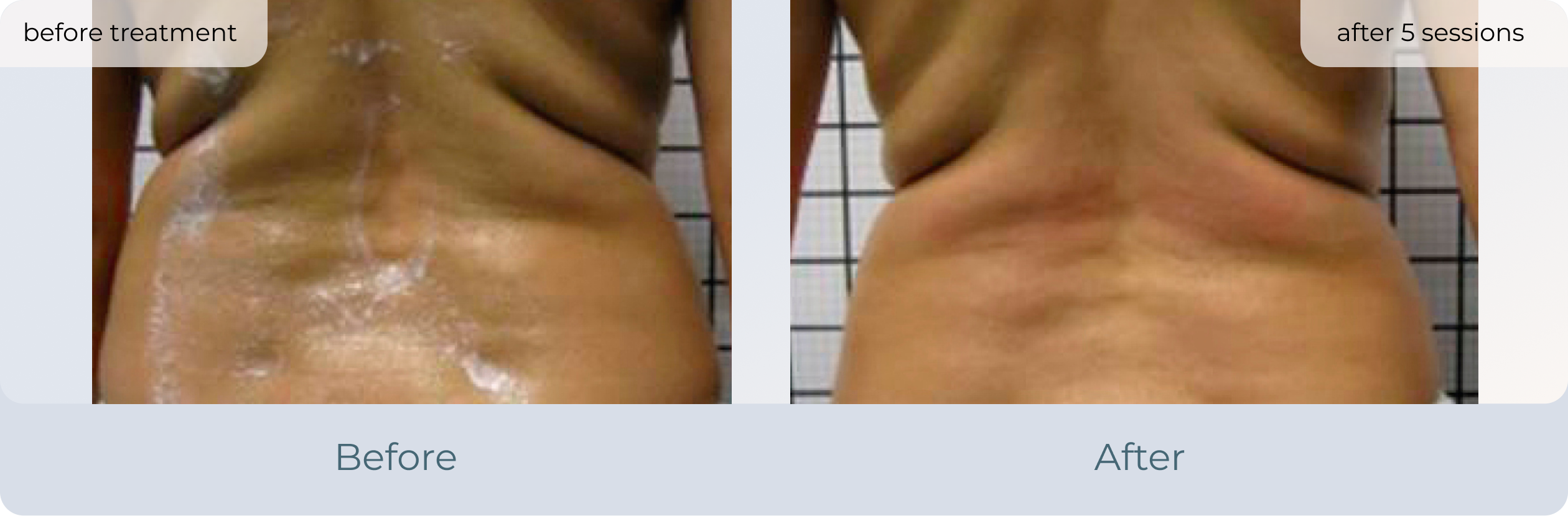 Temporary redness in the treated area is common and subsides within 3 days. Patients are expected to be able to return to normal activities without any downtime after this revitalising postpartum slimming treatment for mums.